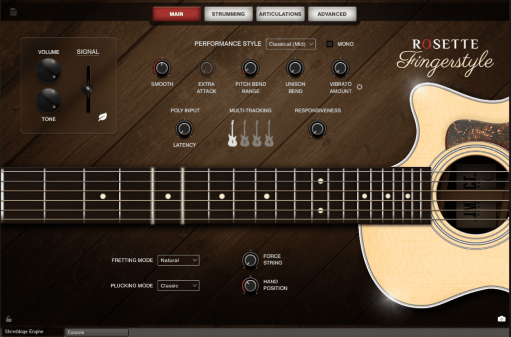一把精美的原声吉他,钢弦,录制得非常详细。Rosette Fingerstyle 是我们新推出的 Rosette 原声吉他系列中的第一款。