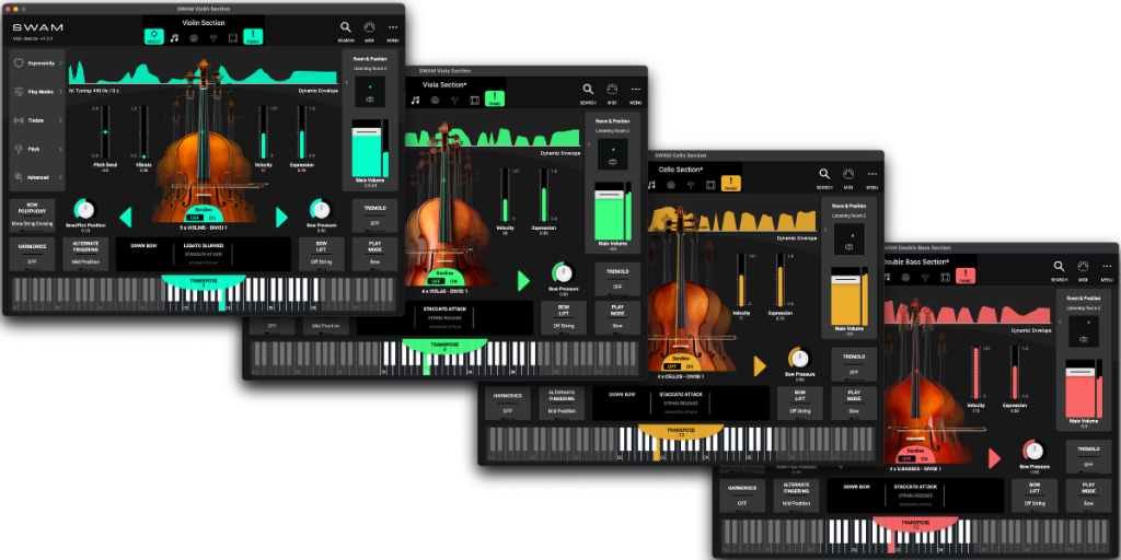 探索 SWAM 技术与我们富有表现力的虚拟乐器相结合的音乐创作新方式。我们隆重推出创新的房间模拟器“Ambiente”,将所有 SWAM 乐器连接到一个完整的生态系统,包含原声独奏乐器和弦乐部分。您可以随意摆放它们,轻松营造完美的音景。