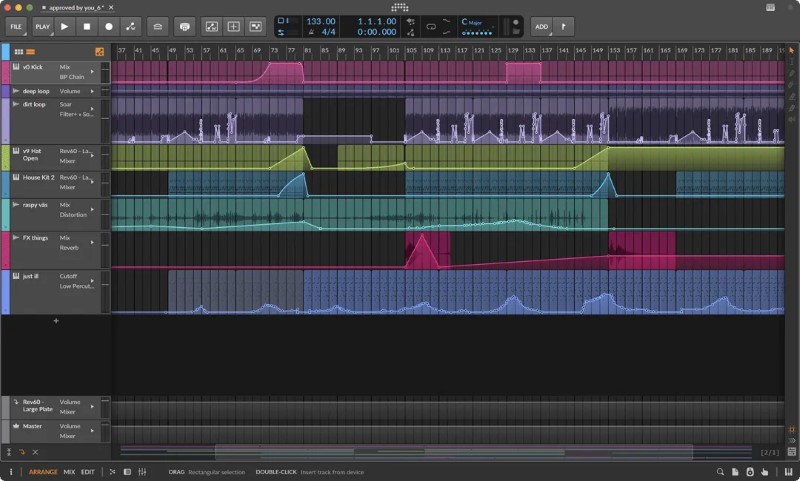片段别名提供了一种处理音乐中重复和结构的新方法,而项目范围的调号则可以帮助您使用音符进行创作。全新改进的工具,例如“喷雾罐”和“试听”工具,加入了增强的表情编辑功能(用于精细的细节)和分层编辑功能(用于整体工作)。所有这些变化都极大地改善了您使用 Bitwig Studio 6 进行基本音乐制作任务的方式。